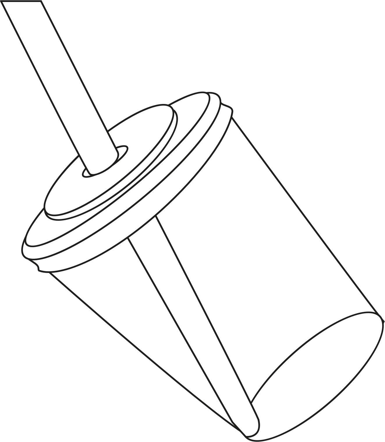a simple disposable drink cup, somewhat tilted, with lid and straw, as black on white line drawing
