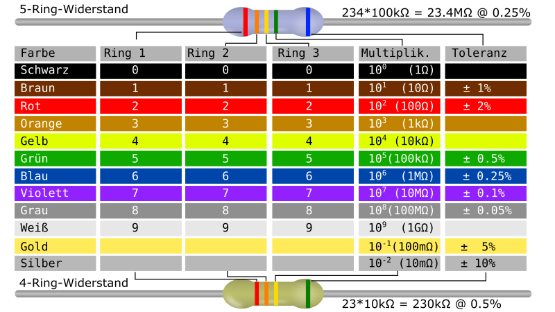 THT Resistor color code table (German version)