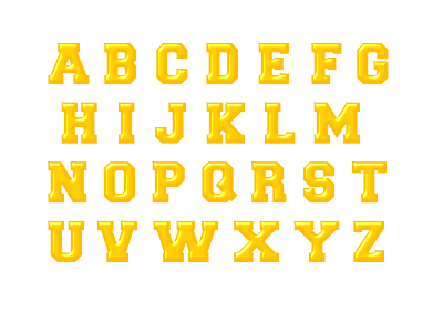 A gold-coloured version of alphabet 6.