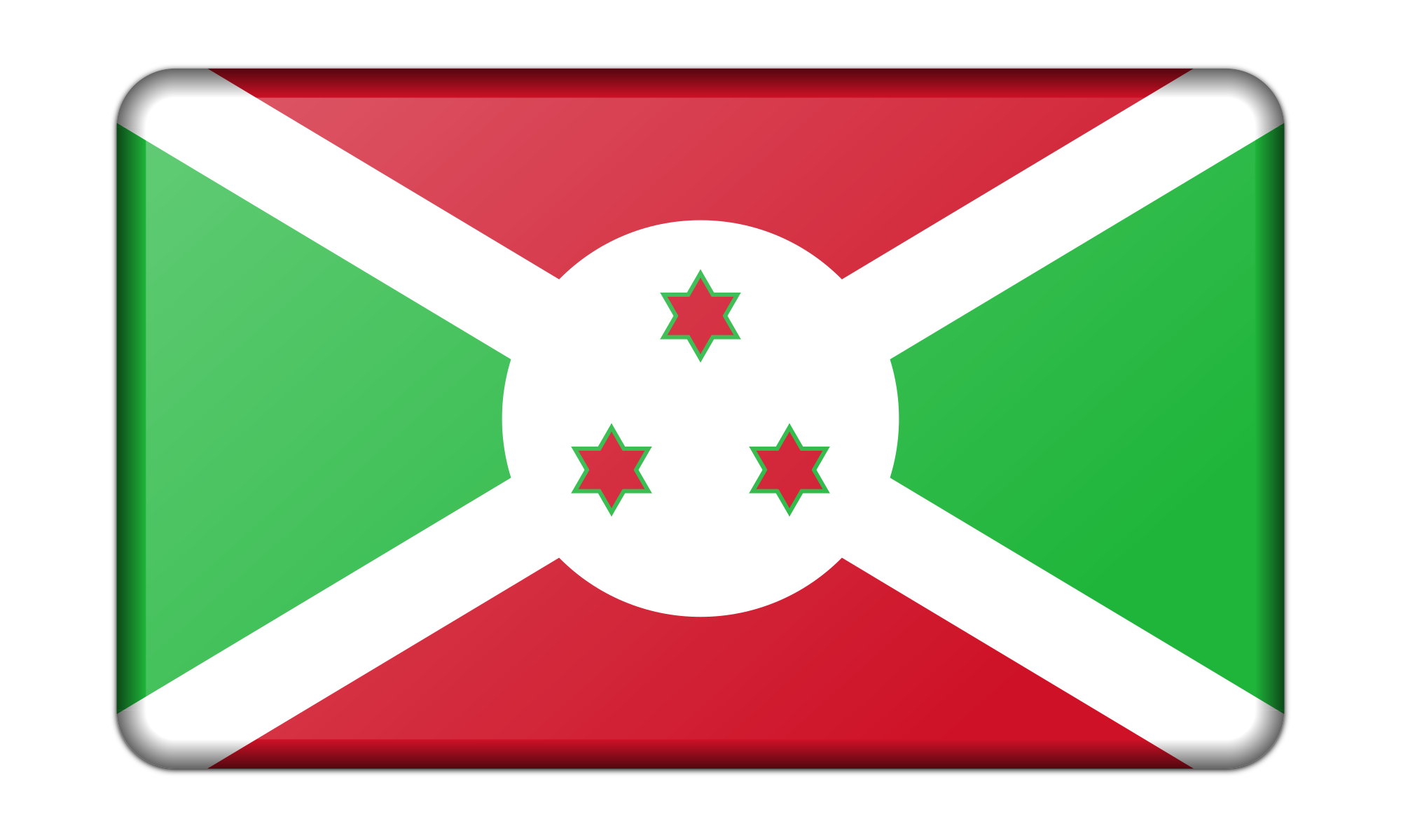 A bevelled version of the flag of Burundi. Adapted from a public domain drawing.
