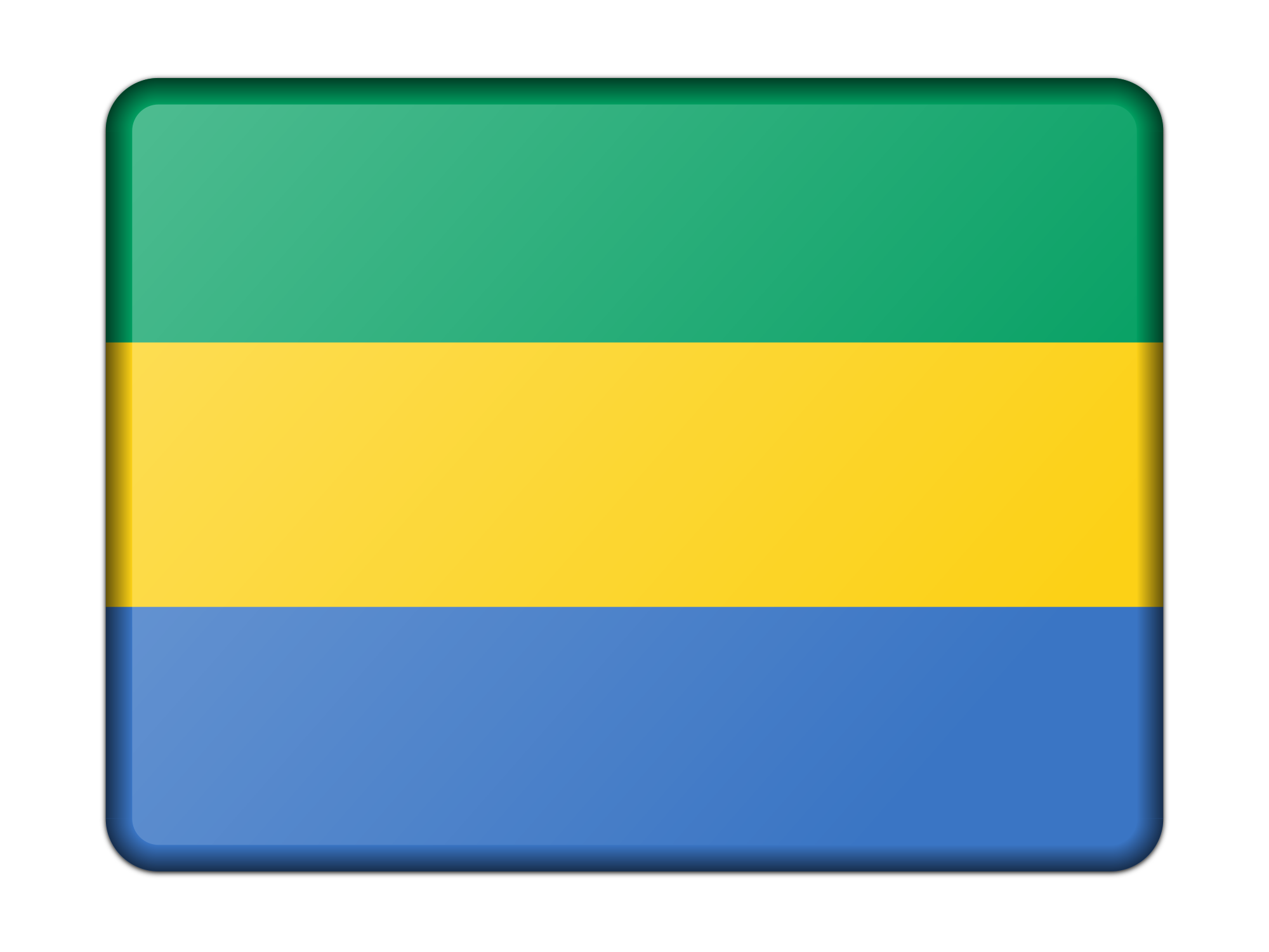 A bevelled version of the flag of Gabon. Adapted from a public domain drawing.