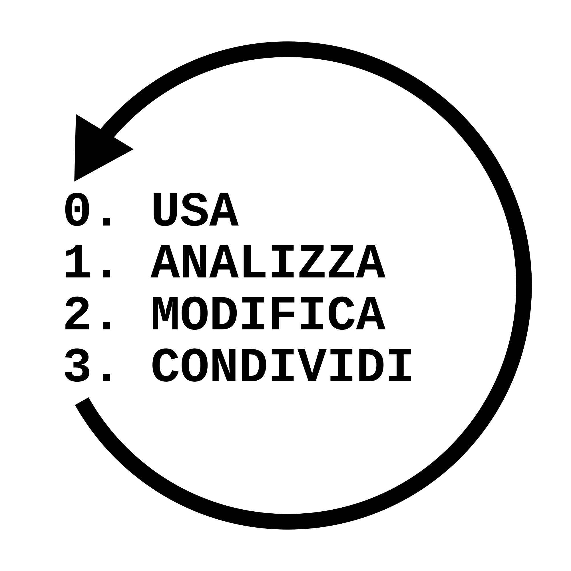 In Italian it spells "Use, Analyze, Modify, Share", the four freedoms granted by Free Software. Every year ~10000 stickers with this are printed and distributed to Italian LUGs.
