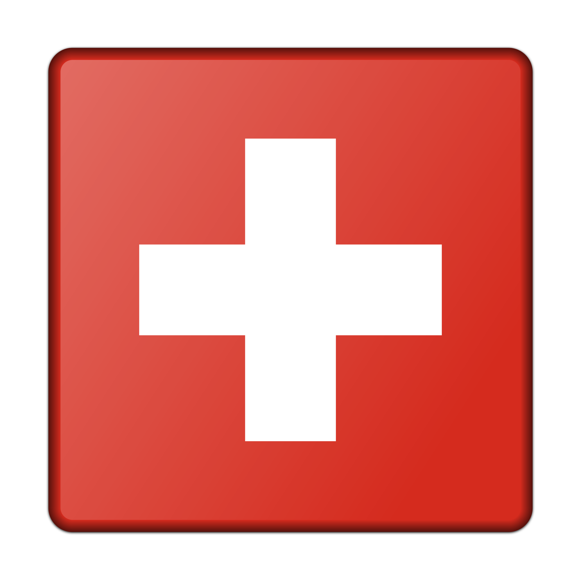 A bevelled version of the flag of Switzerland. Adapted from a public domain drawing.