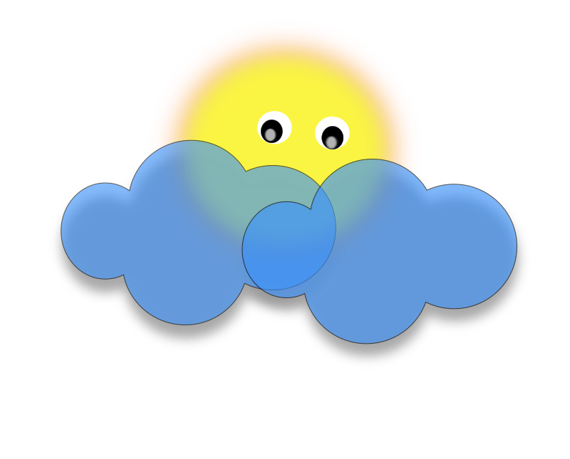 A cute sun peering out through some clouds.