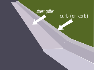 The image depicts a curb (or kerb) and a street gutter.