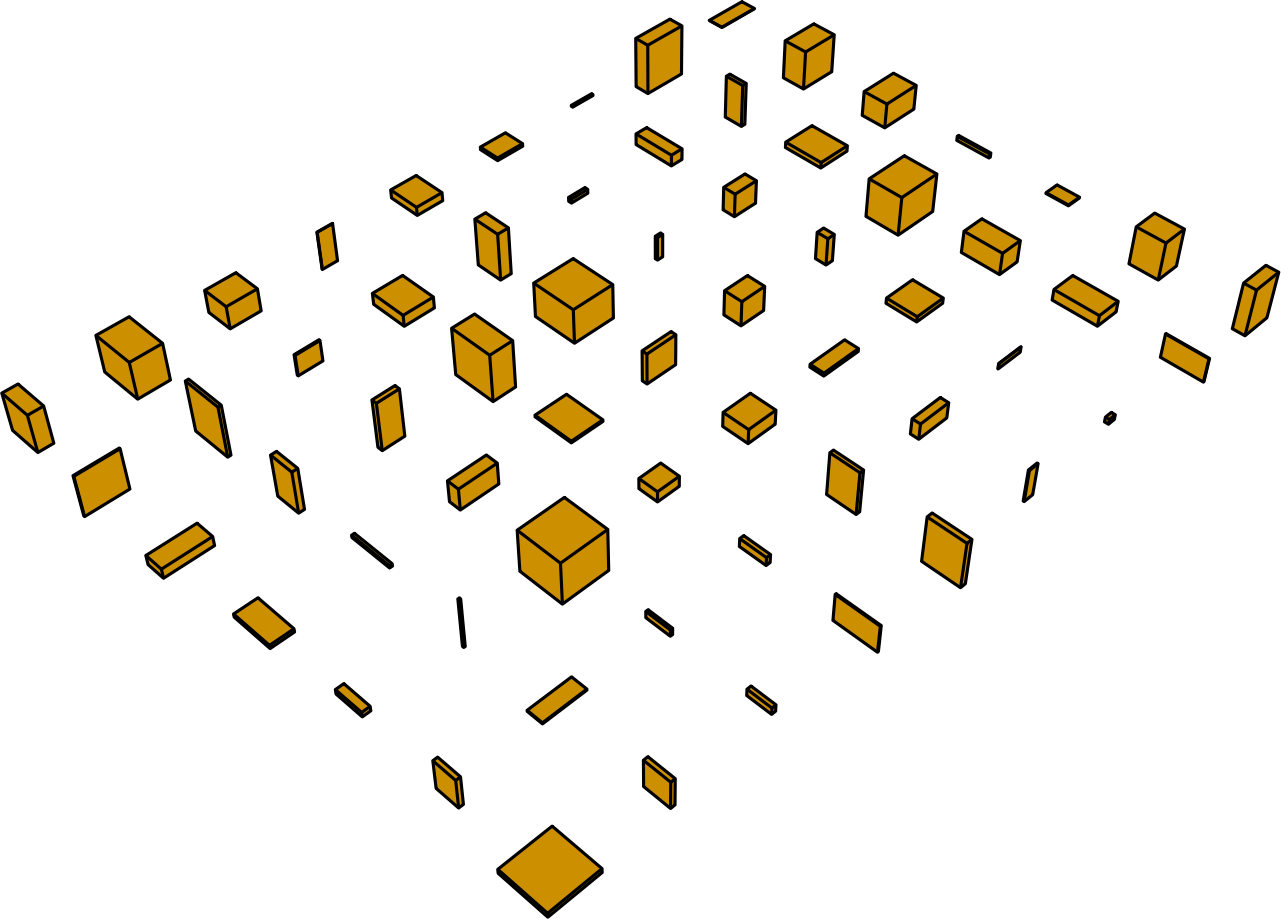 Single color version of randomized 3D box shapes. The image doesn't use perspective display, so you can reorder these boxes any way you like and combine them together. However, each box has a different randomized shape, so they won't fit together like puzzle blocks.