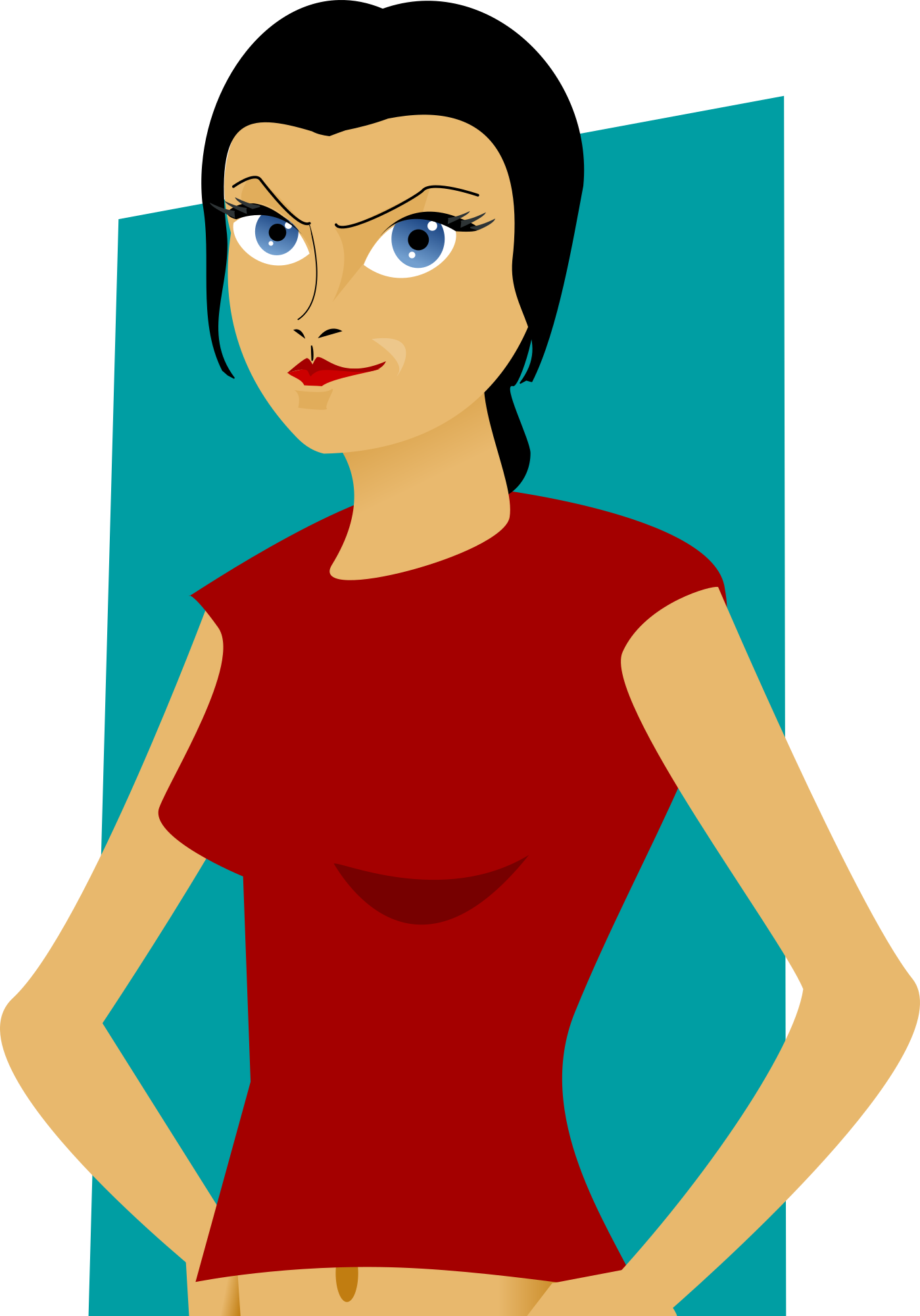 A girl with a red top.