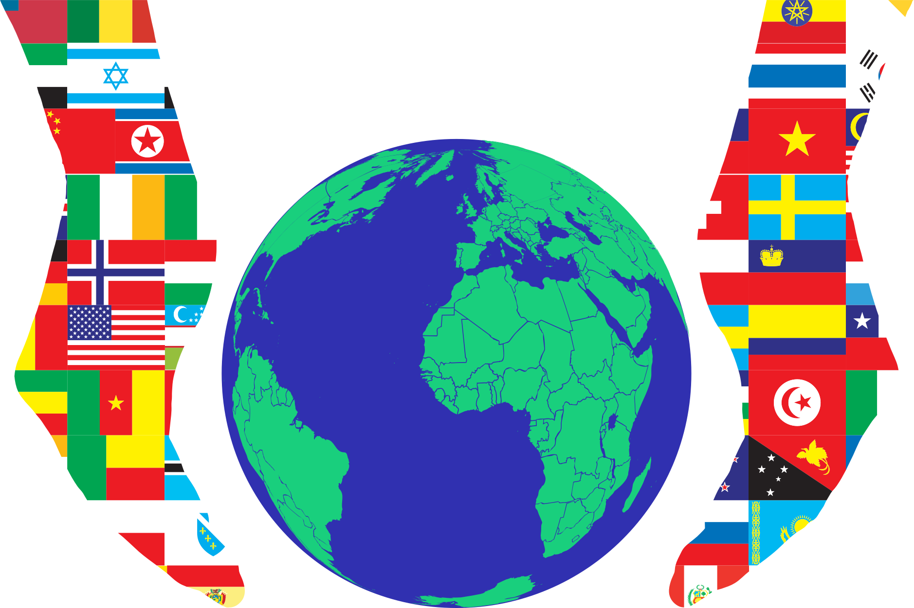 Prismatic World Countries Globe Word Cloud Plus