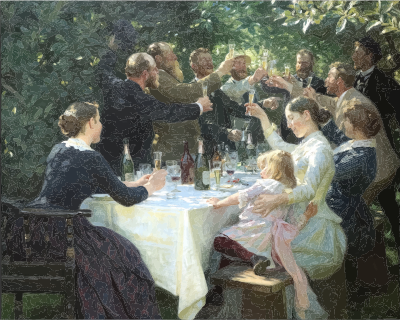 Hipp Hipp Hurra By Peder Severin Kroyer. https://en.wikipedia.org/wiki/File:Hipp_hipp_hurra!_Konstn%C3%A4rsfest_p%C3%A5_Skagen_-_Peder_Severin_Kr%C3%B8yer.jpg