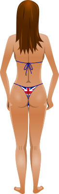 Young lady (light skin, flag bikini, brown hair)