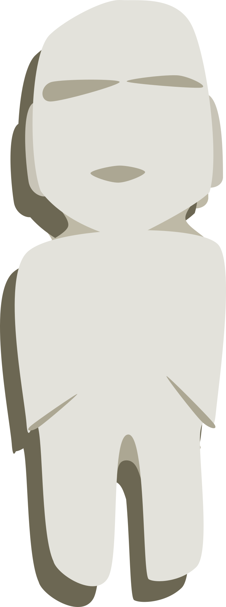A stylized stone figurine of a standing man. These figures were made in Mexico, around 500 B.C. to 400 A.D. They are stylistically similar to Olmec figures from that time.