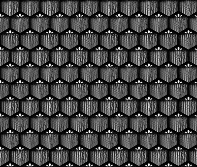 The image depicts a seamless pattern of Japanese Edo pattern called "kikkou-matsu" or "亀甲松" meaning " tortoiseshell-pinetree".