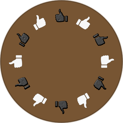 The round table made up from a dozen of thumbs-up symbols. This one includes both, right-handed and left-handed, knights.