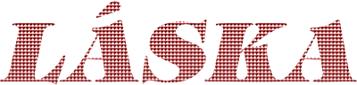 The word Láska (Love in Slovak and in Czech) filled with a pattern of hand-drawn hearts.