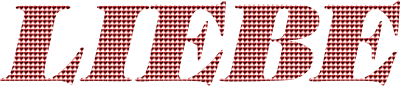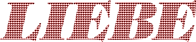 The word Liebe (Love in German) filled with a pattern of hand-drawn hearts.