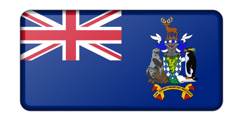 A bevelled version of the flag of South Georgia and South Sandwich Islands. Adapted from a public domain drawing.