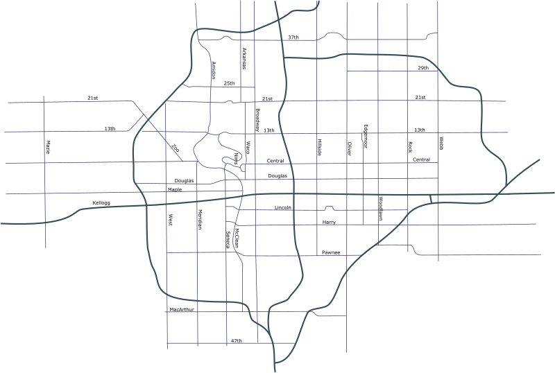 Street map of Wichita Kansas.
