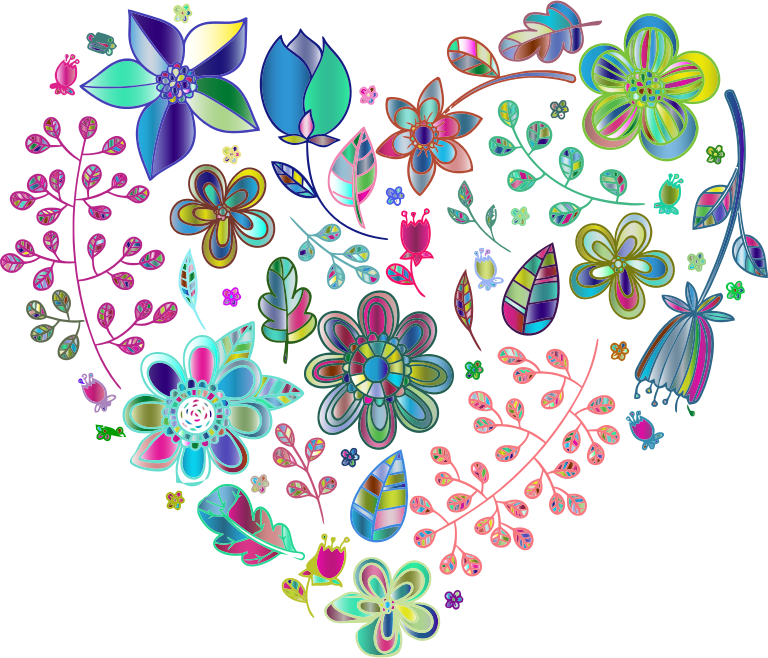 Prismatic Psychedelic Floral Heart No Background