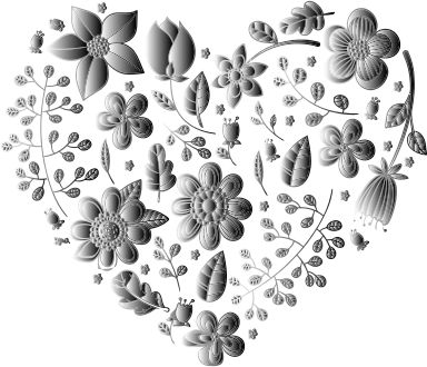 Grayscale Floral Heart No Background