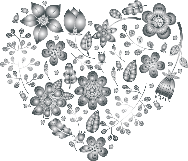 Grayscale Floral Heart 3 No Background