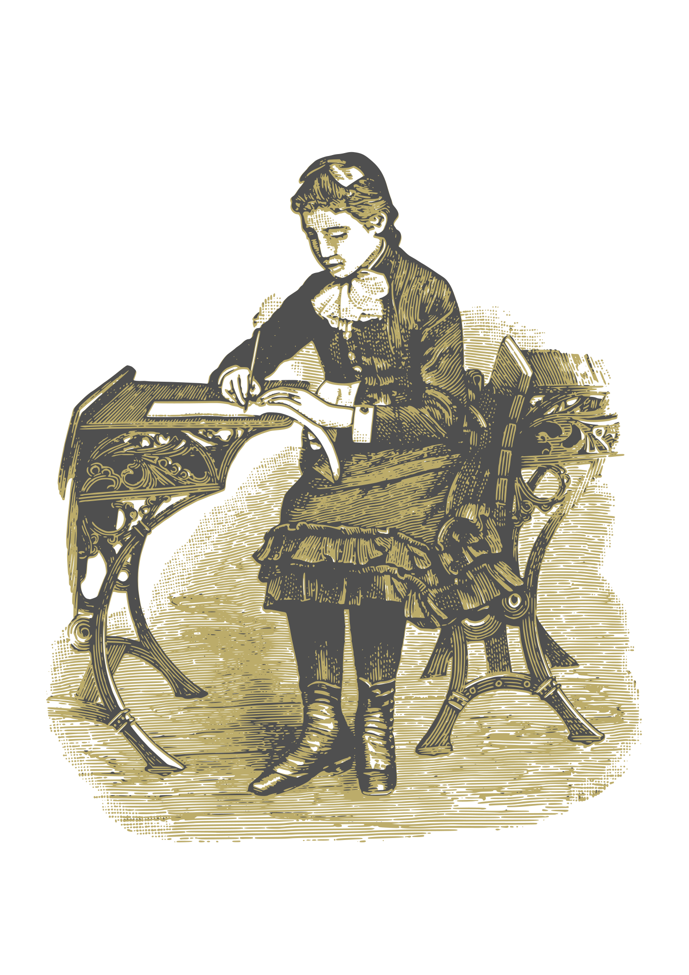 A vintage girl at school.