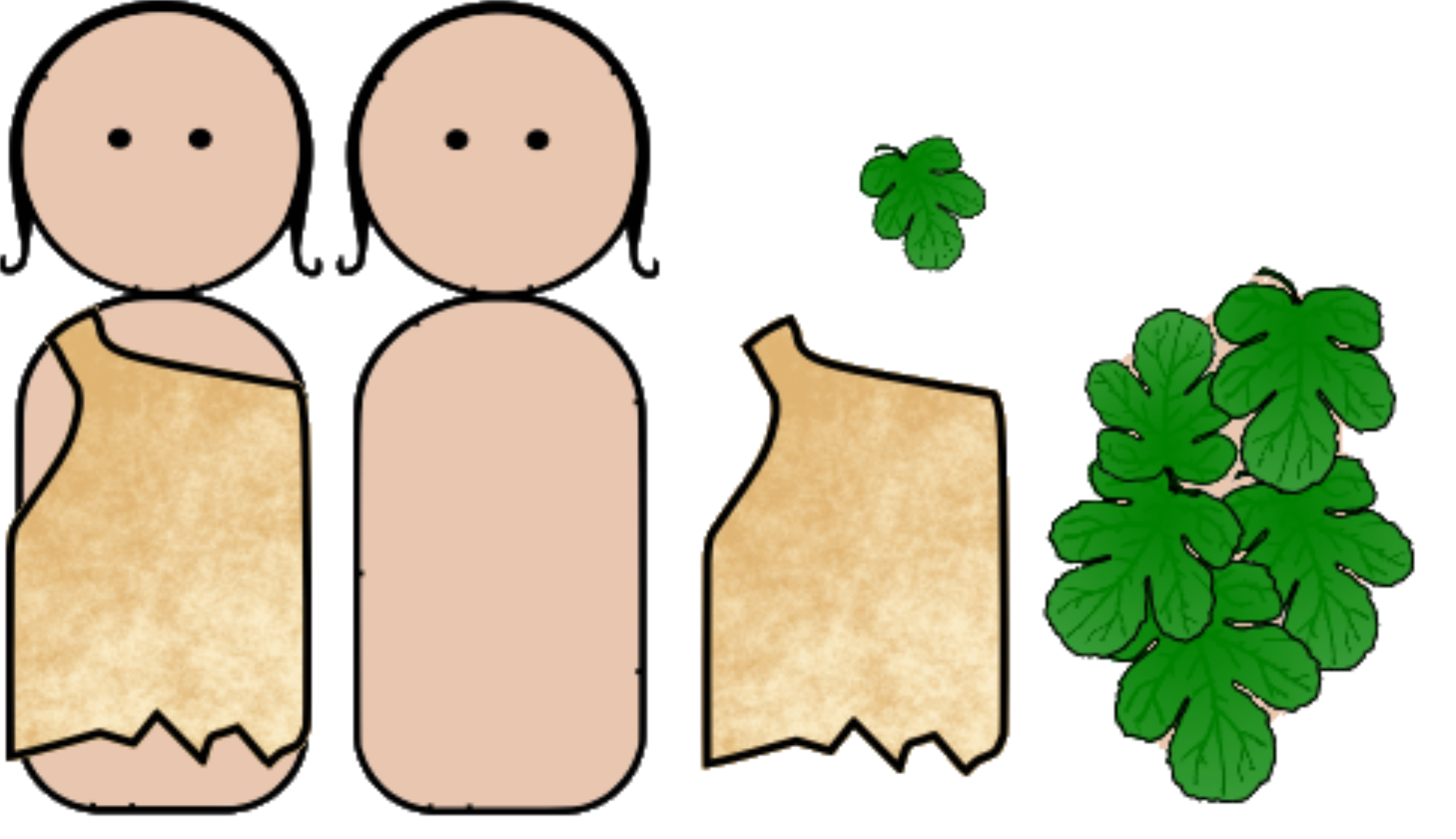 Eve dressed herself in fig leaves. God covered Adam in skins.These can be used as part of a diorama, a Bible scrapbook page, a story page, stickers, paper dolls, and more.