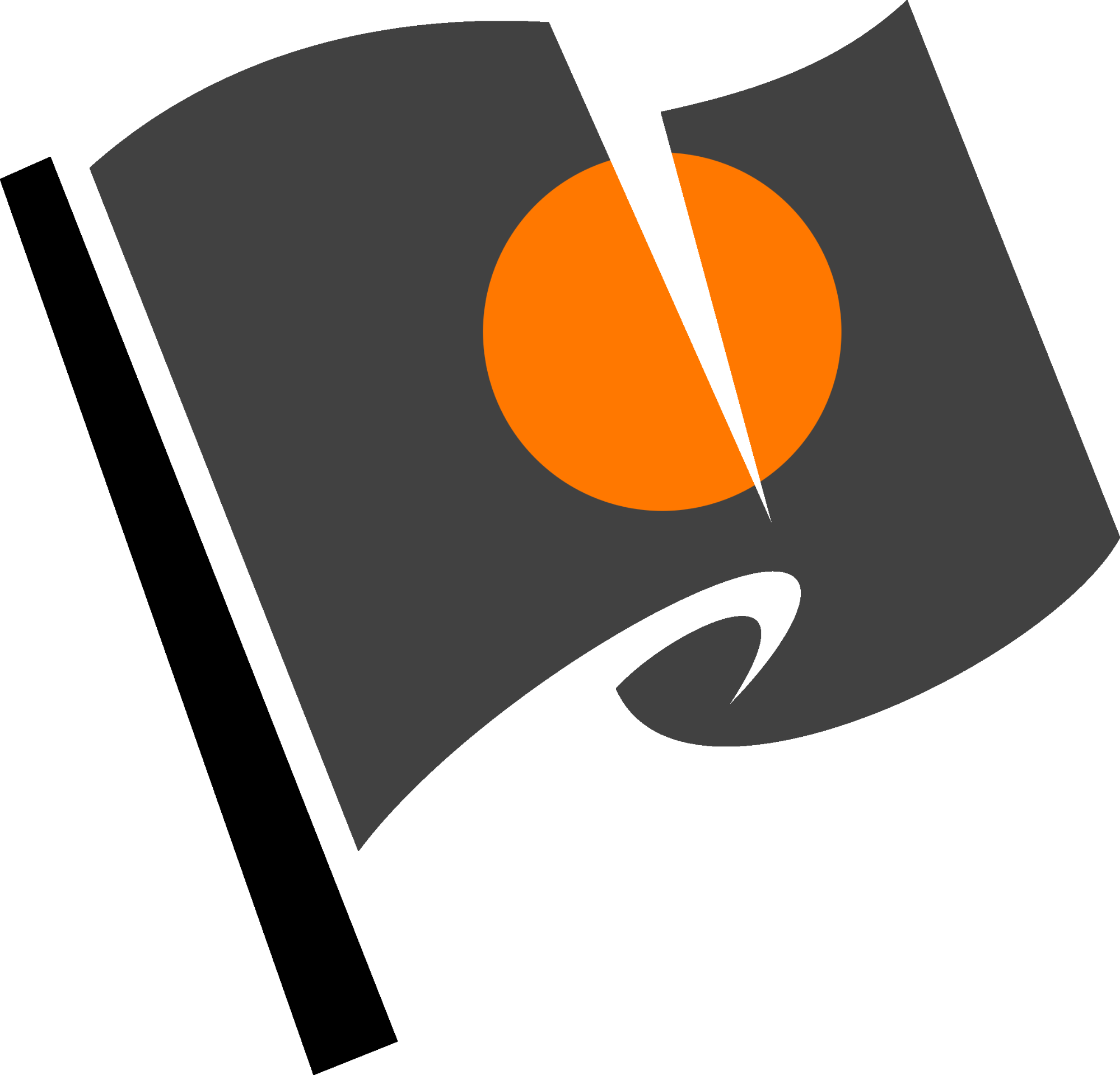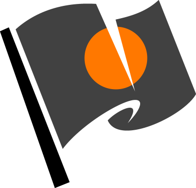 A black racing flag with an orange dot done in stylized way. This flag is shown together with the number of the driver. It means that the driver of the car with the shown number has to come to the pits to get his car repaired.