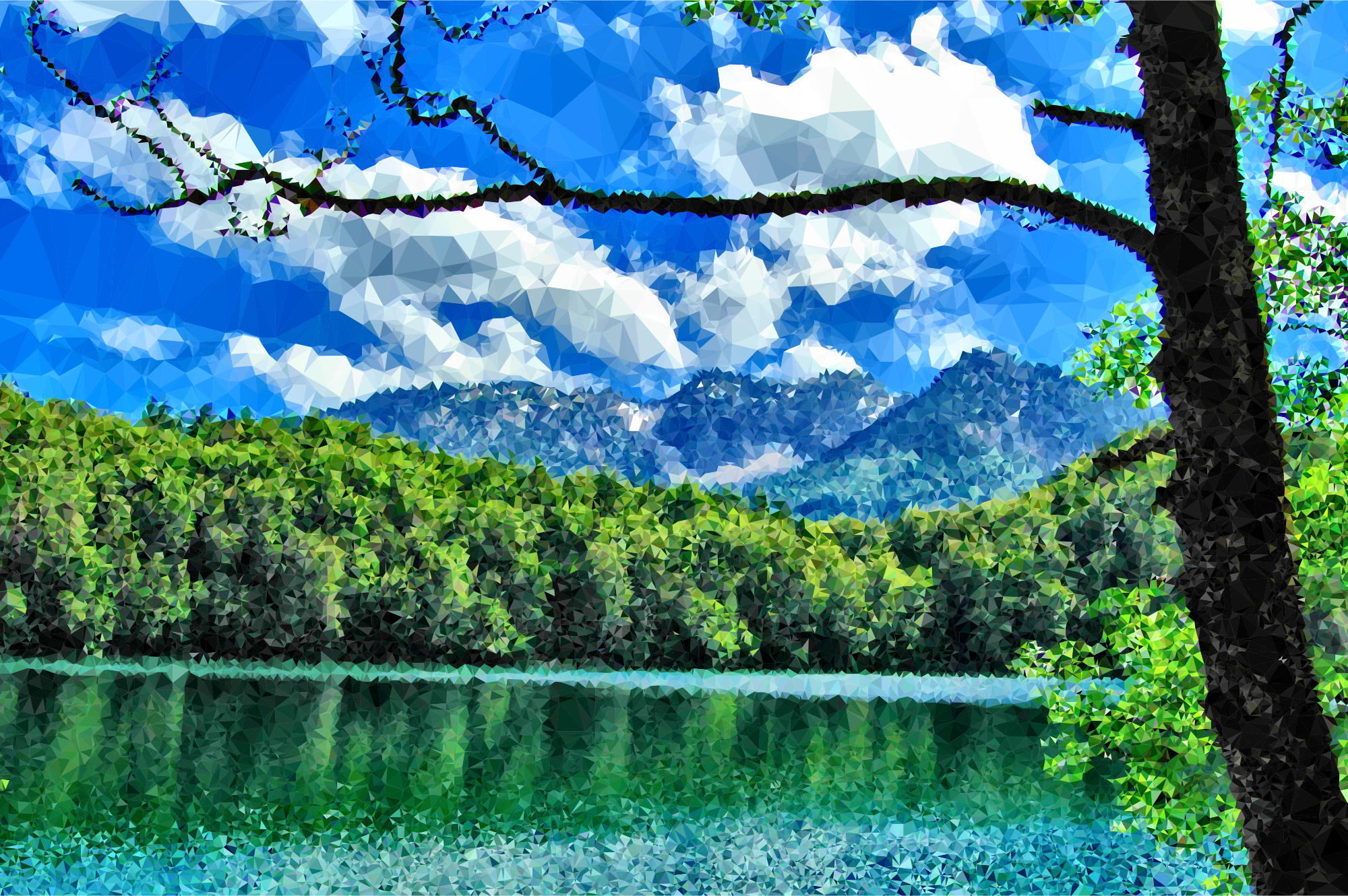 - Abstract Bavaria Blue Sky Clouds Forest Geometric Germany Lake Landscape Low Poly Mountains Nature Polygons Source+Pixabay Triangles Water