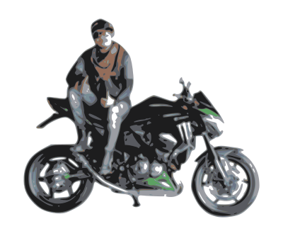 The image depicts a man who is sitting on his motorcycle's seat.The original image is from pixabay.com.
