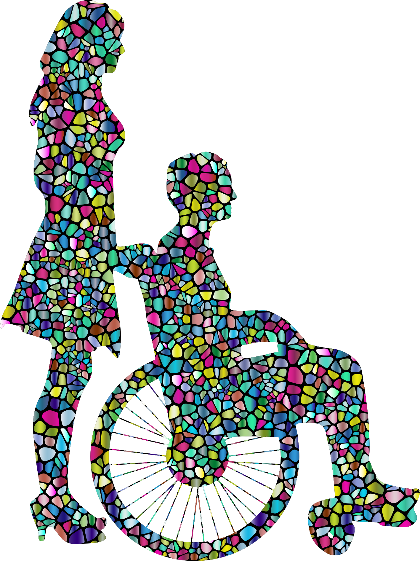 Polyprismatic Tiled Woman Pushing Man In Wheelchair Silhouette With Background