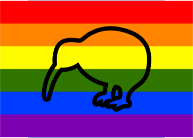 Rainbow flag with kiwi.
