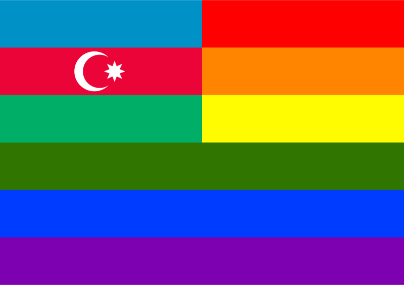 Flag of Azebaijan in front of rainbow flag.