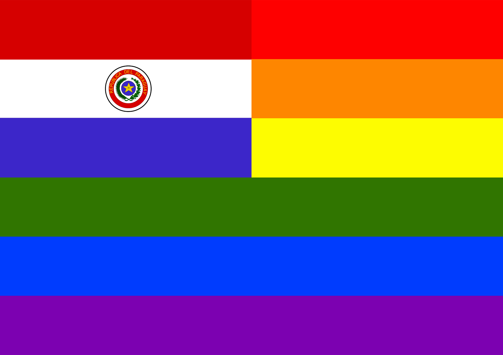 Flag of Paraguay in front of rainbow flag.