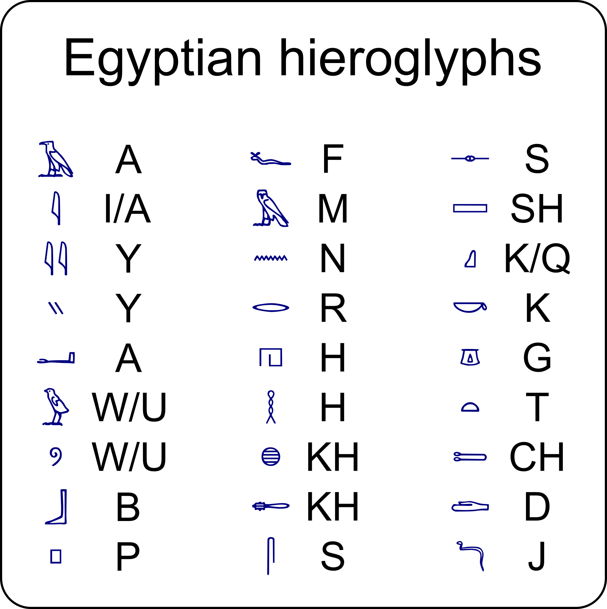 - Egypt Egyptian characters hieroglyph hieroglyphs letters list sounds symbols