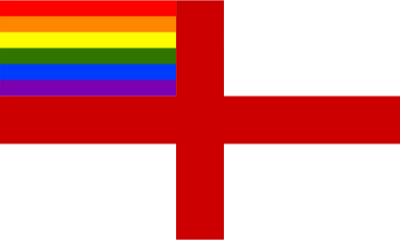 Flag of England in combination with rainbow flag.