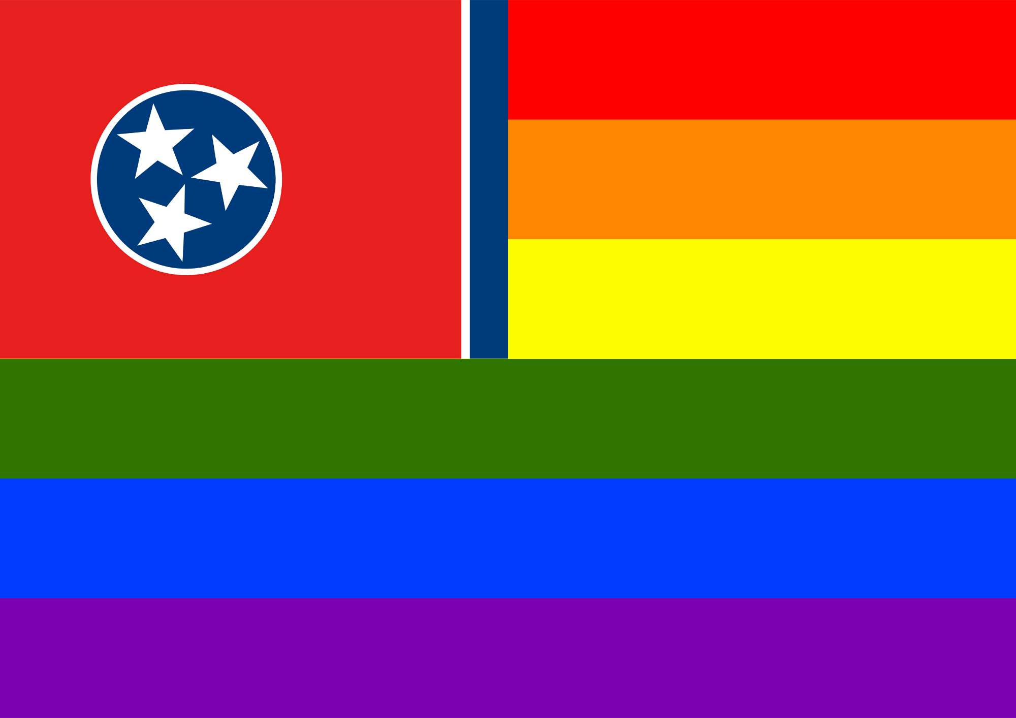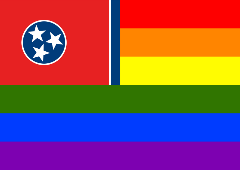 Flag of Tennessee in front of rainbow flag.