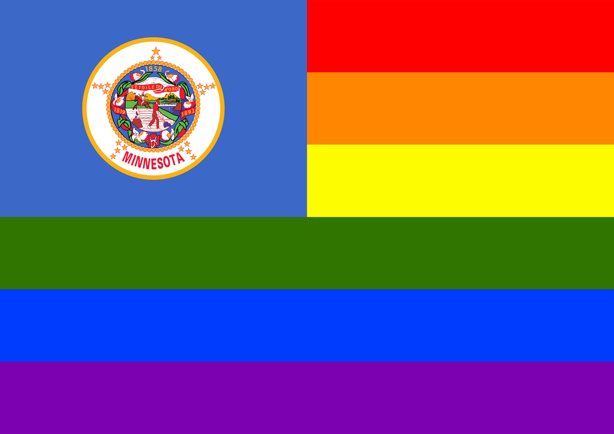 Flag of Minnesota in front of rainbow flag.