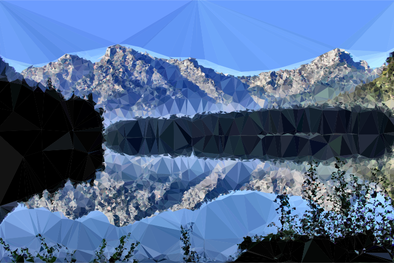 Low Poly Mountain Lake Reflection derived from https://pixabay.com/en/lake-water-mirroring-landscape-1535172/