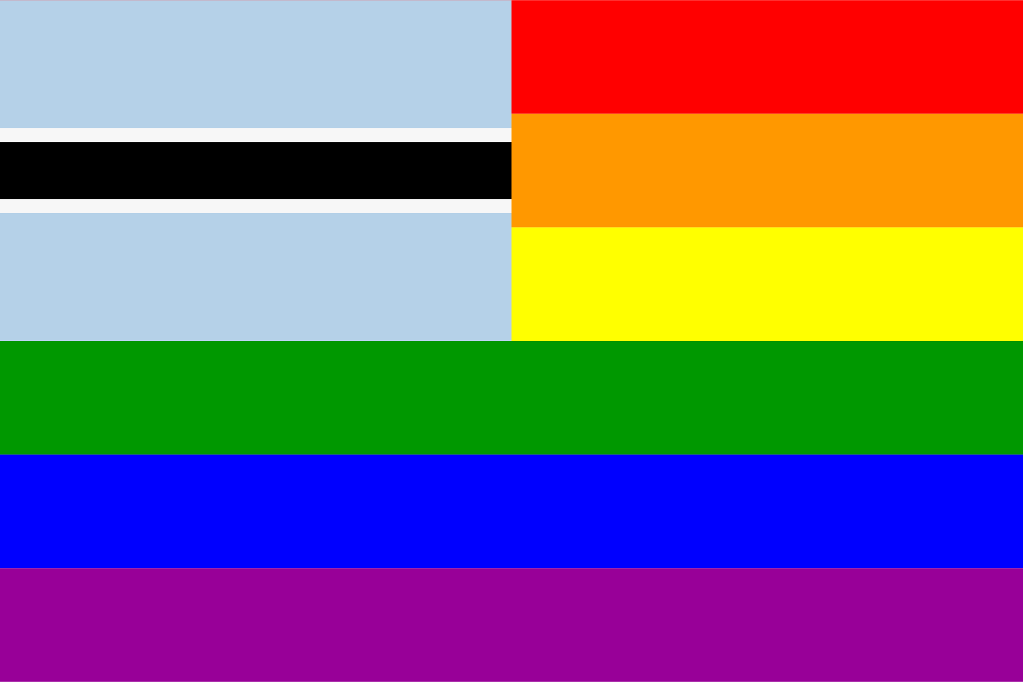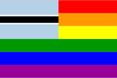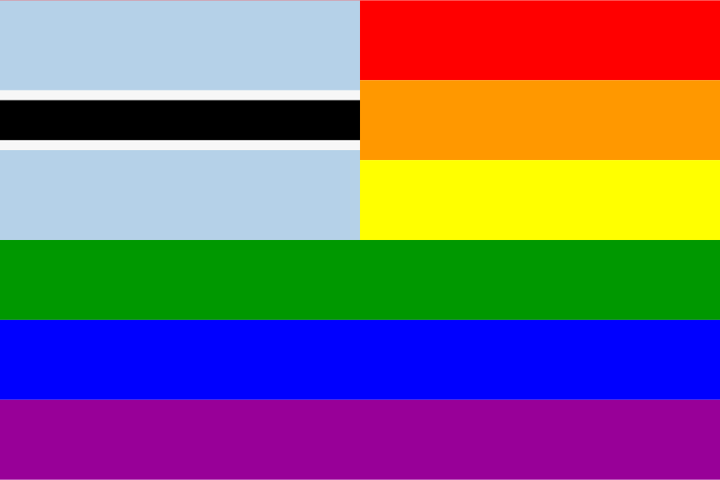 The flag of Botswana superimposed over the rainbow flag.