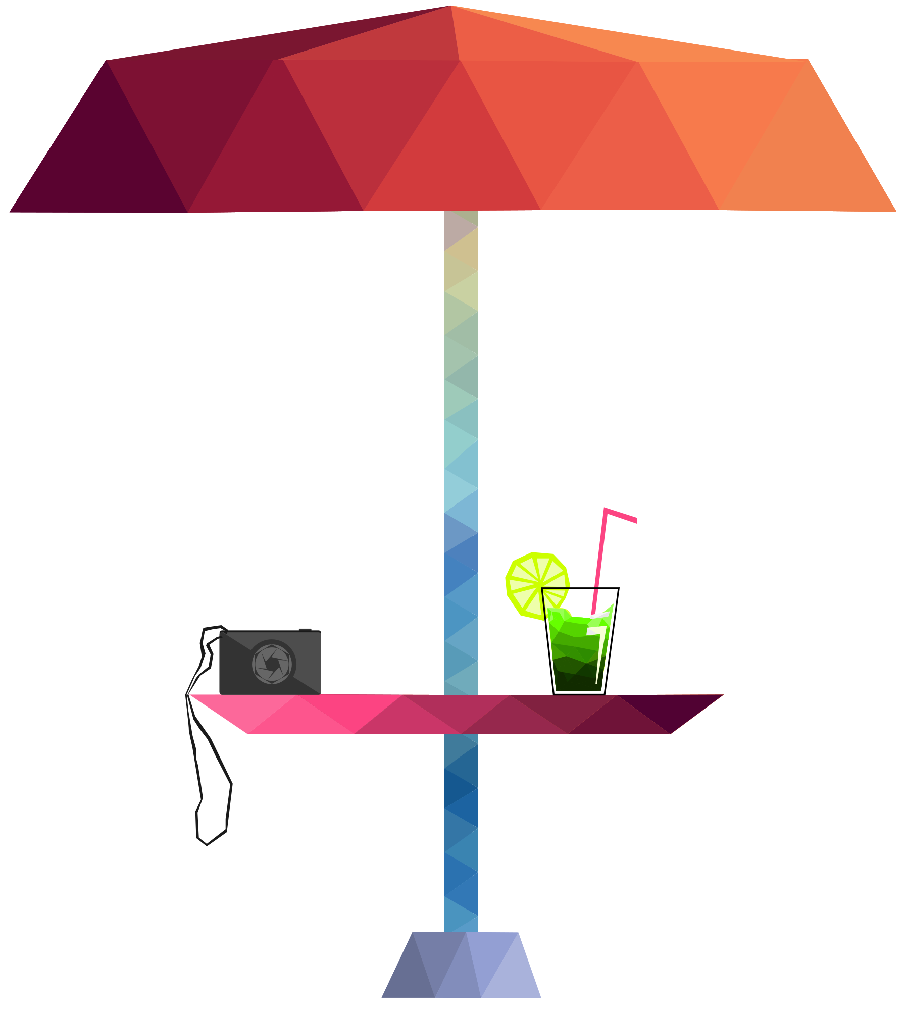 Lowpoly Beach umbrella, Camera and drink