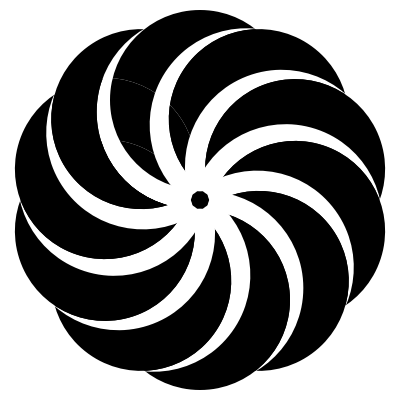 Drawn with 2 circles. Circles are reused, rotated, clipped, and masked as needed.Can easily change colors and/or flip to change curvature.Inspired by http://www.dailyminimal.com/post/147242488309/jl16-635-a-new-geometric-design-every-day