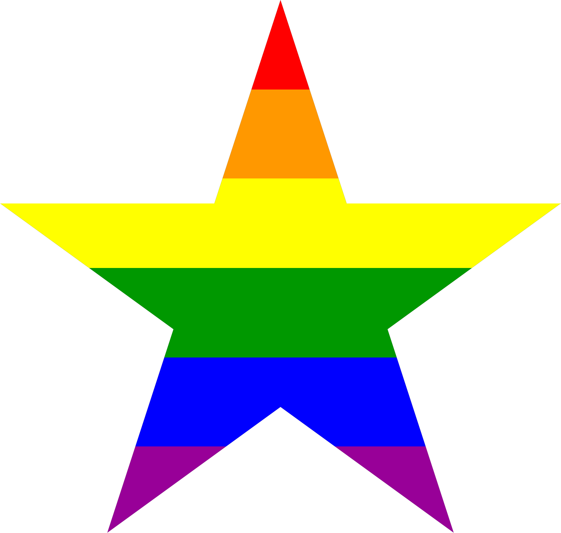 A rainbow-filled star polygon, calculated and coded by hand to follow the classical star shape (sometimes called a concave decagon) traditionally constructed geometrically since antiquity.