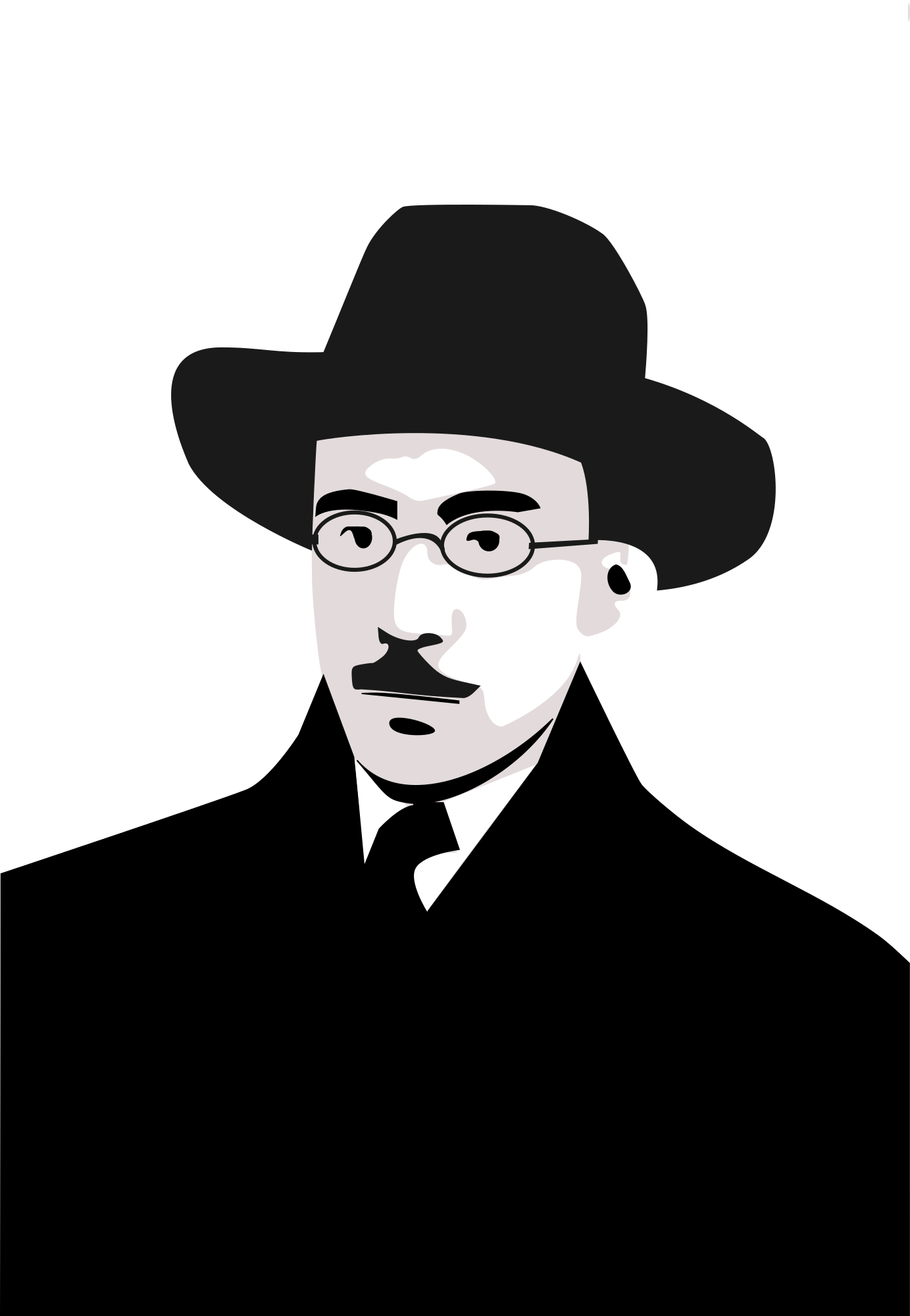 Fernando Pessoa a famous Portuguese writer. Based on a public domain painting - commons.wikimedia.org/wiki/Fernando_Pessoa#/media/File:CCI00768.jpg , motivated by a stencil by cvvbranco, but not based on it.