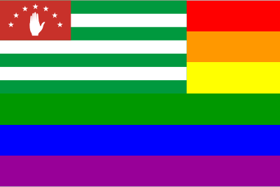The flag of Abkhazia superimposed over the rainbow flag.