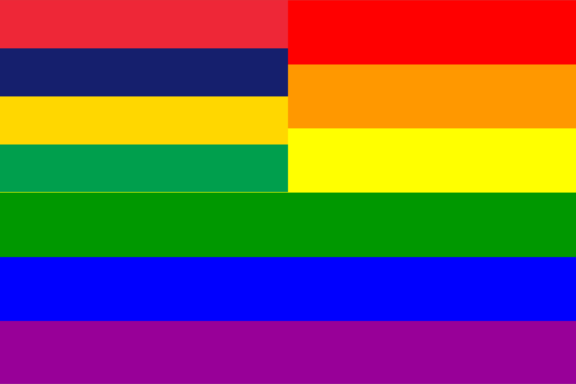 The flag of Mauritius superimposed over the rainbow flag.