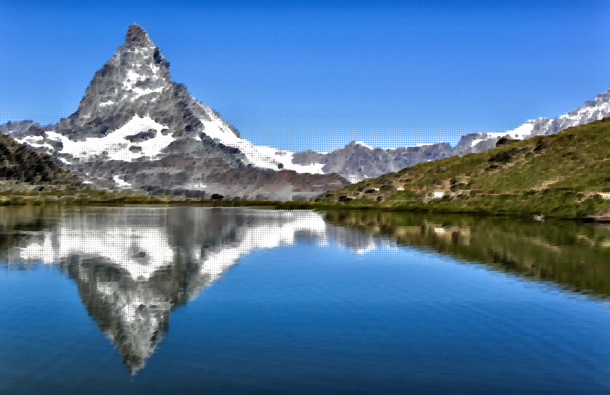 - Abstract Art Circles Dots Geometric Lake Landscape Mosaic Mountains Nature Photograph Source+Pixabay Surreal Swiss Switzerland Water