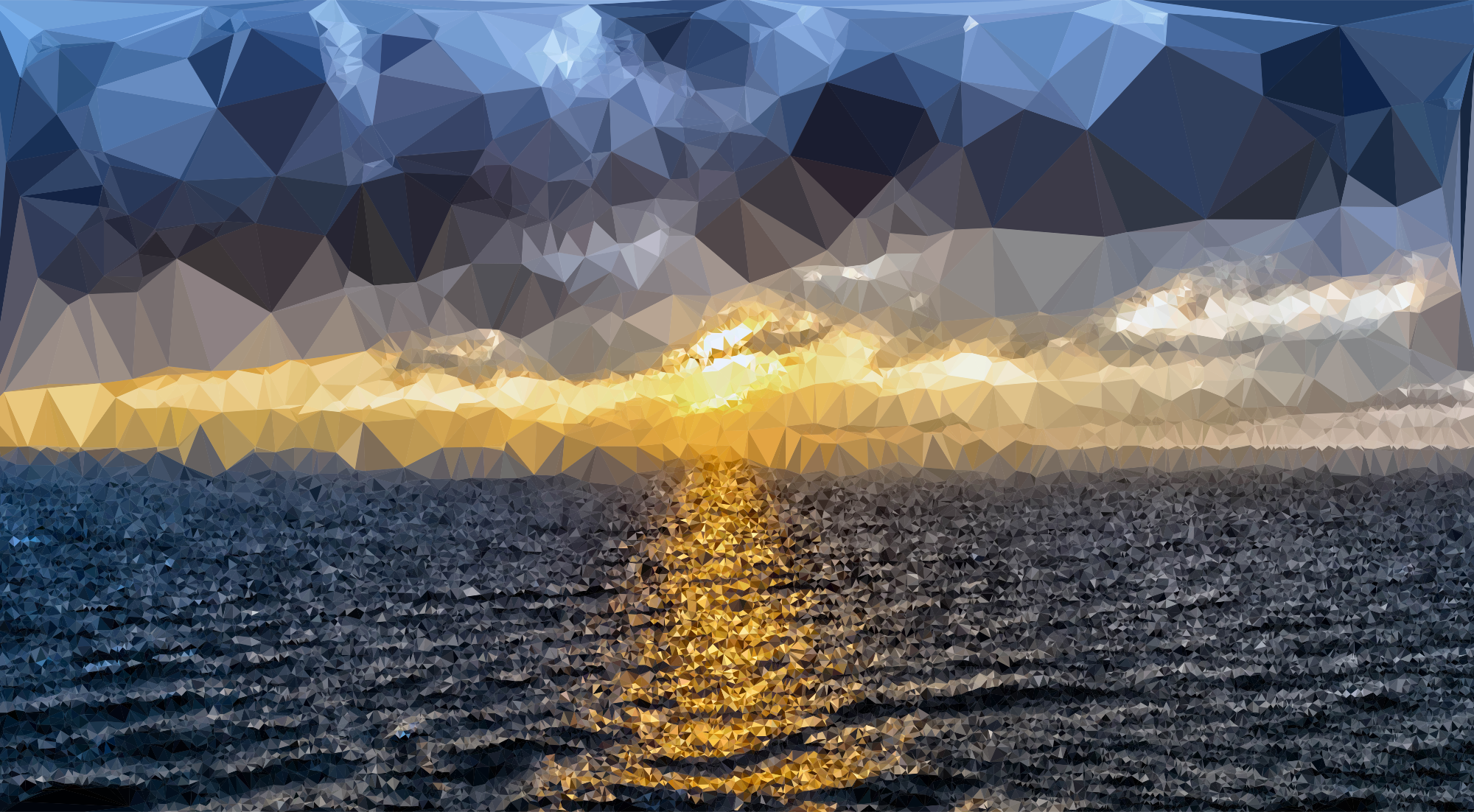 Low Poly Ocean Sunset derived from https://pixabay.com/en/sunset-evening-evening-sky-clouds-1591599/