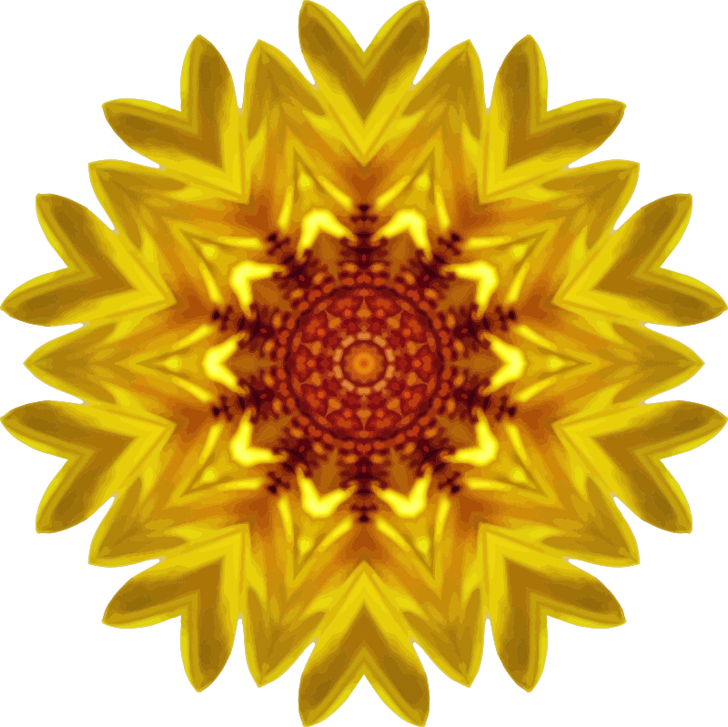 Drawn from a Pixabay image of a sunflower using the kaleidoscope plug-in in Paint.net and vectorised in Vector Magic.