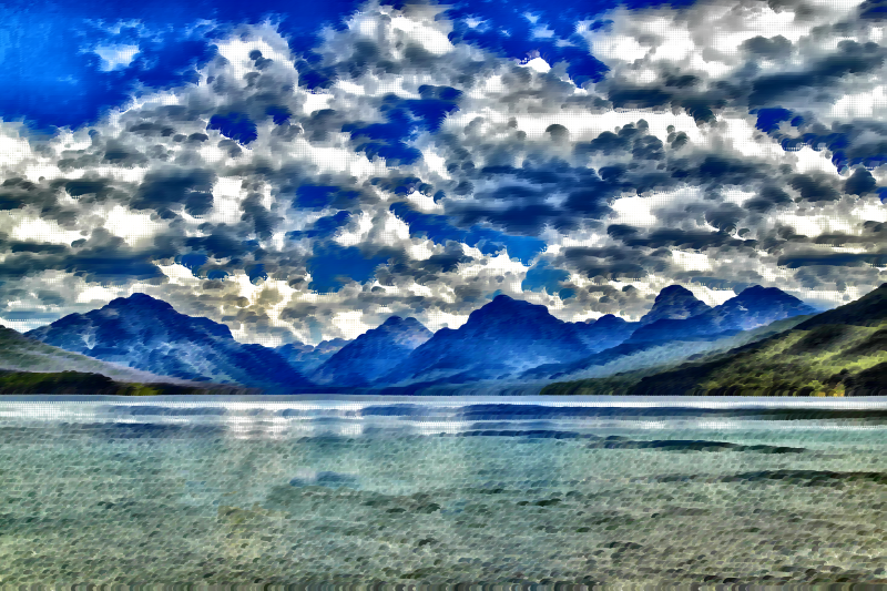 Surreal Lake McDonald Montana derived from https://pixabay.com/en/lake-mcdonald-landscape-kayaking-1583657/