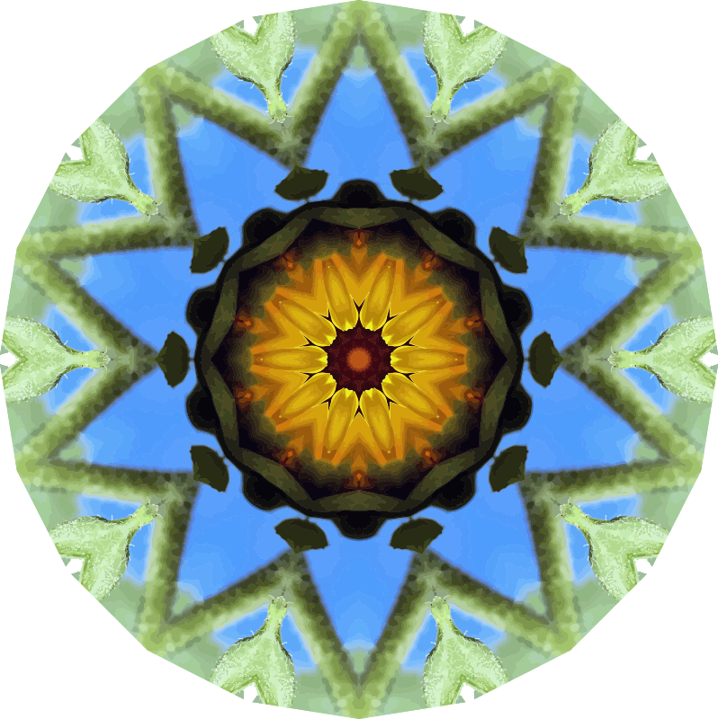 Drawn from a Pixabay image of a sunflower using the kaleidoscope plug-in in Paint.net and vectorised in Vector Magic.